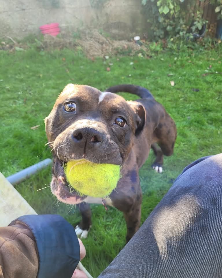 With a chance to breathe, Suzi began to eat again. She was placed in a temporary foster home, where a simple truth about her was discovered: her absolute, unbridled favourite thing in the world was a tennis ball. The joy of the chase was a tiny pinprick of light in the darkness.